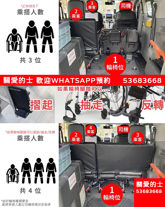 關愛的士提供無障礙接載服務,主要為早一天或以上的預約服務。但有些特別安排如定期覆診來回、24小時口岸或機場接送服務,以及全日包車服務等,我們亦有提供,以滿足乘客每日行程的不同需要。我們的龐大車隊位於香港島,九龍,新界,絕對有能力關心、關懷每位人士之需要。若對上述其他項目收費作詳細查詢,歡迎致電或whatsapp我們以作了解。